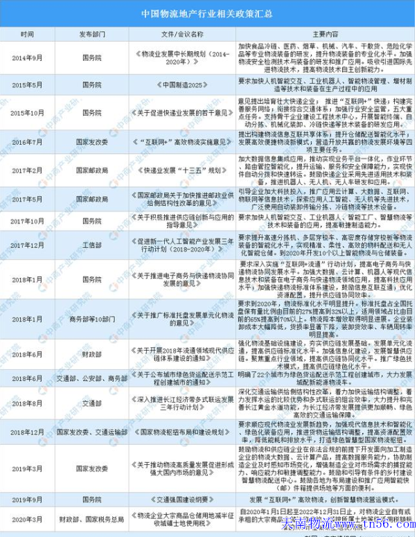 2020年中國物流地產(chǎn)行業(yè)政策匯總